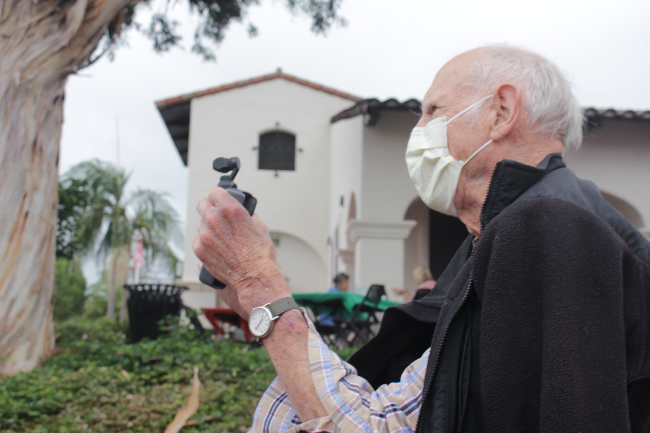 The next day, Video One Productions Facilitator Fred Harshbarger had his 3:33-minute video (above) of the BBQ up on YouTube. Take a look! That’s Fred below, mask and all, shooting his BBQ video.