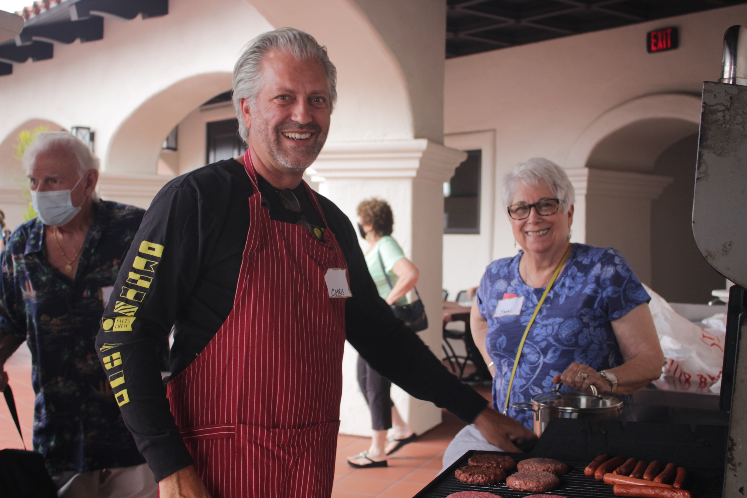 At our first major in-person event since the start of the pandemic, some 68 club members and friends attended the Video Club’s Second Annual Summer BBQ on August 18 as guests of the club. The free dinner was a gift to our members for their loyalty throughout the COVID-19 crisis, according to Marsha Berman, who again co-ordinated the event. Our venue was the Clubhouse 2 patio adjoining the BBQ grill — a successful new location for future club activities.