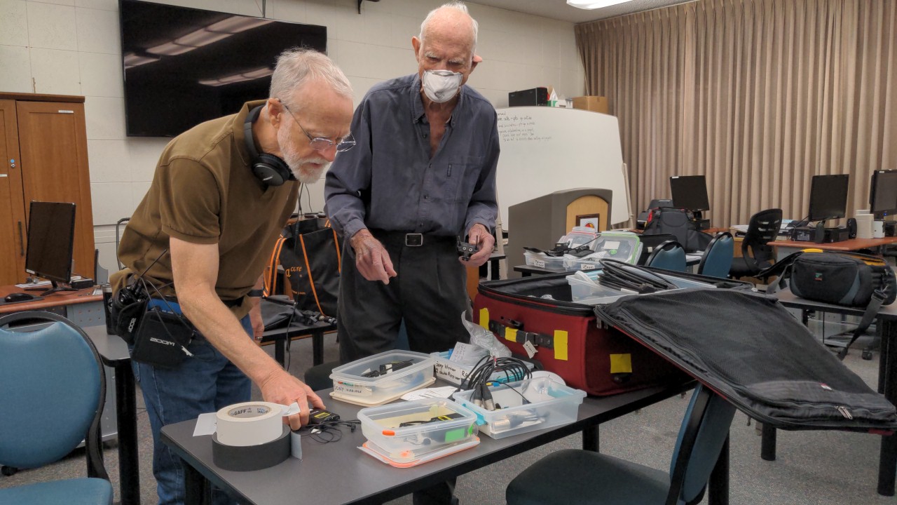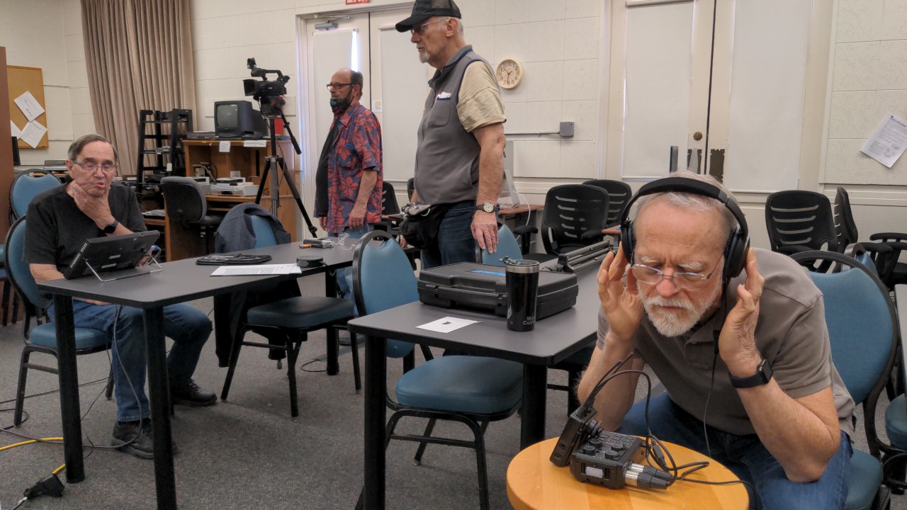 To strengthen our club’s Video One Productions team – as well as club members’ individual skills – Dr. Tom Nash offered two special workshops in lighting and sound earlier in 2022. The need for these workshops became evident during November and December of 2021, as Jack Crawbuck, Director of Photography for our third Short Dramatic Film, “The Hole in One,” struggled to manage sound and lighting – as well as multiple cameras – during eight shoots requiring 20 set-ups at 10 Village locations. Crew members with audio skills are especially needed — and Video One Productions Facilitator is currently giving the team extra practice by producing 30-minute video for Village Television which details Video Club services.