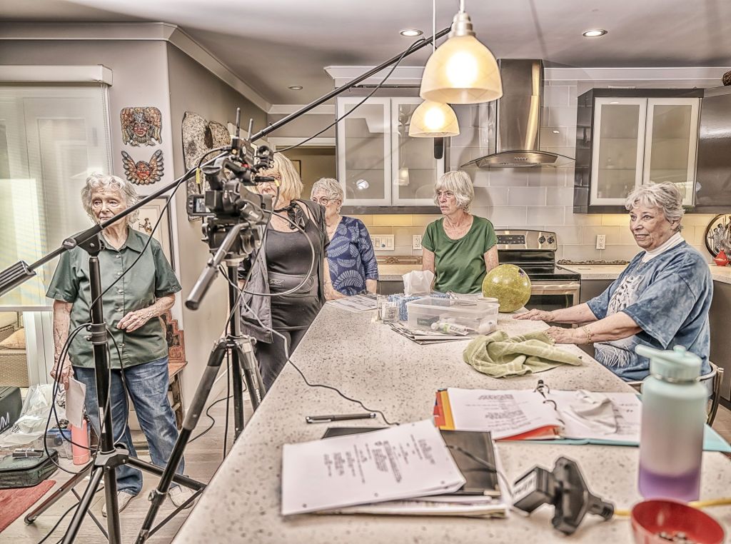Four days of shooting for “Bowling Ball Debacle,” the Video Club’s fourth Short Dramatic Film, were completed by noon Thursday, October 20, 2022. Editing is in process. The script, by Jeanne Sanner, was the Video Club’s annual script contest winner. Sanner also played the leading role with Wendy Hames, Toni Redman and Mark Schwarz filling out the cast.