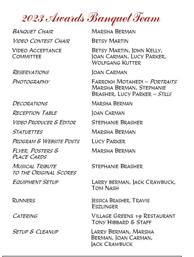 To see photos from the 2023 Goldie Awards Banquet, follow this link to the Video Club’s Google Photos account — https://photos.app.goo.gl/3ftNa7p4U9YVKUz78