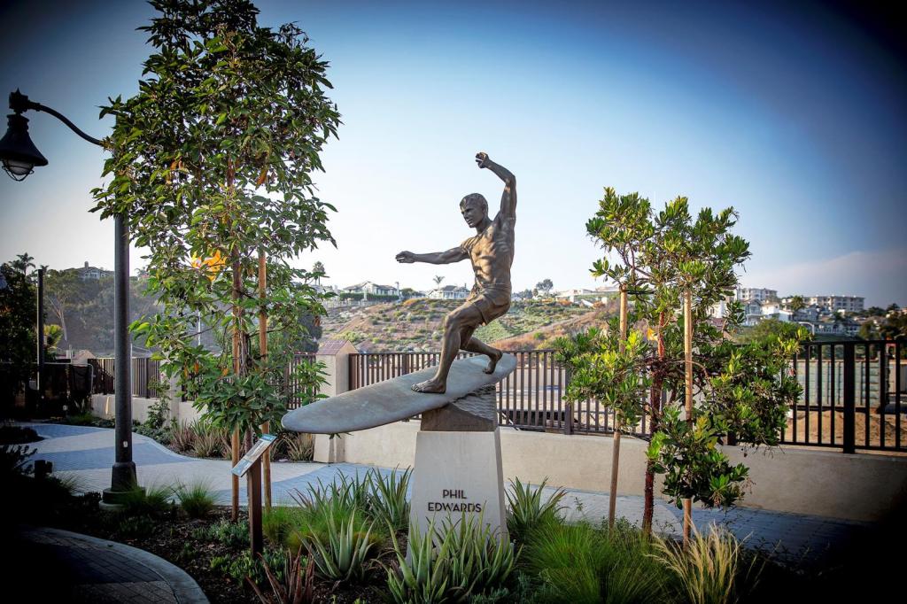 “Beyond the Gates” goes surfing in May, 2023 with a fast-action show produced by Jack Crawbuck. In the first segment, host and resident Bill Hemberger interviews famed surfer and surfboard expert Duke Aipa at his surfboard store in Santa Ana. Next, host Nadia Sturner goes to Dana Point Harbor where she views the Doheny surfing statues (right) and interviews surfing historian Tom Sutherland. We may see more about the local surfing scene on “Beyond the Gates” this summer, since Jack says her has “enough footage for three shows.”