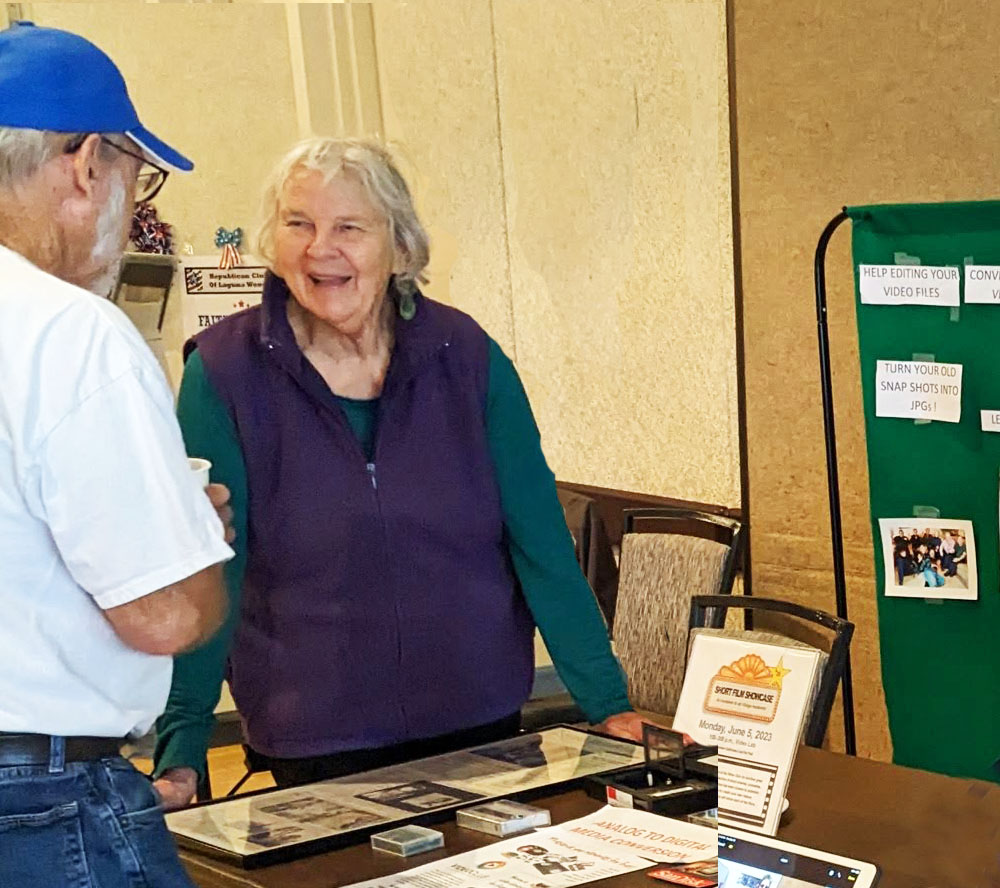 At left, Lili answers questions at the Video Club table during the 2023 Village Clubs Expo in May.