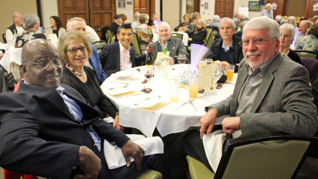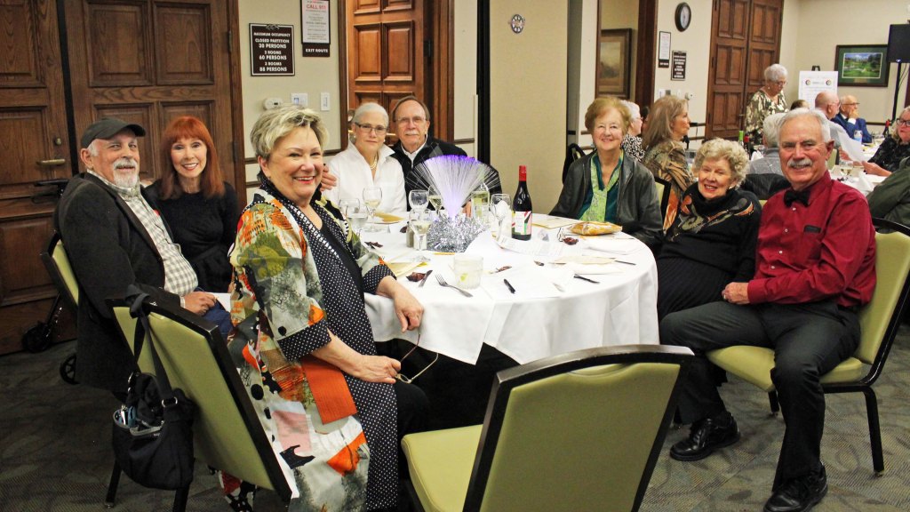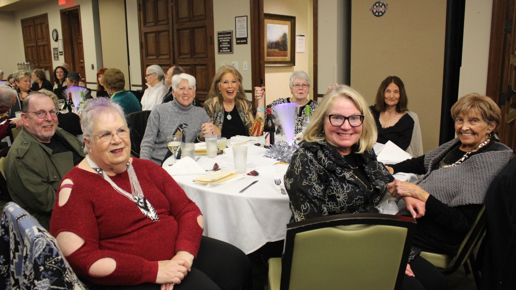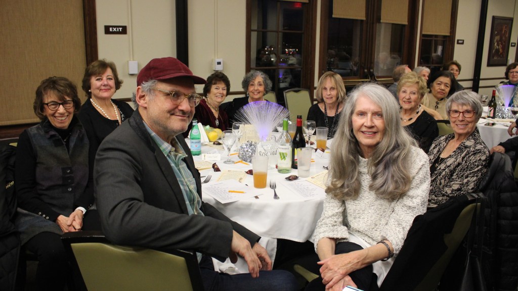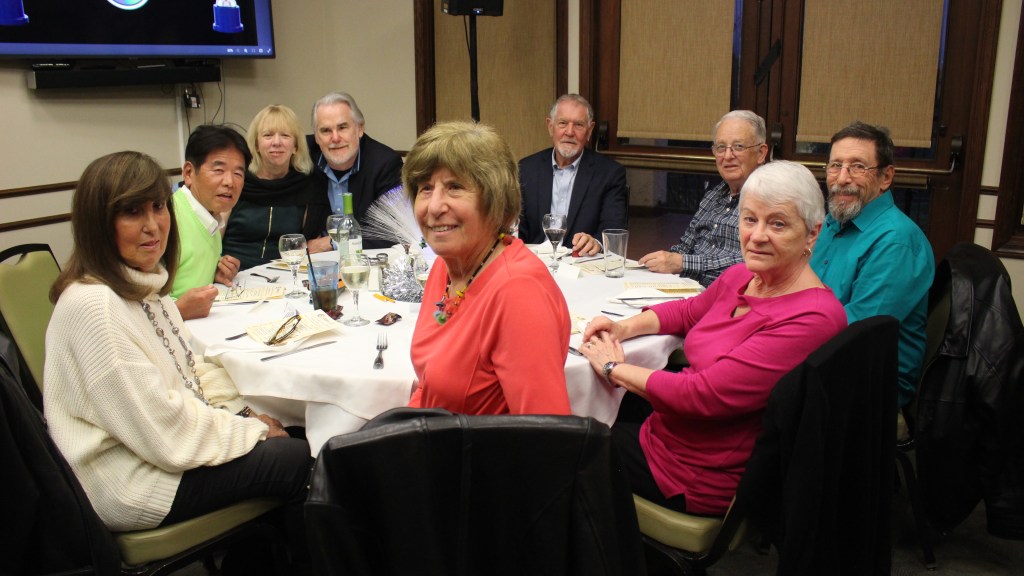 The event, chaired once again by Marsha Berman with assistance from Joan Carman and Nancy Klann-Moren, drew a capacaty crowd of 70+ guests. Vice President Tom Nash served as Emcee, commending Past-President Steve Carman for his nine years of leadership and summarizing the club’s accomplishments during 2023. New President Jonathan William called for more volunteers as he looked forward to a productive year ahead. Wolfgang Kutter, Head Video Lab Supervisor, introduced other Lab Supervisors in attendance. A video tribute reminded attendees of members who passed during 2023, including Stephanie Brasher, Fred Harshbarger, Norma Benner, and Doug Sainsbury.