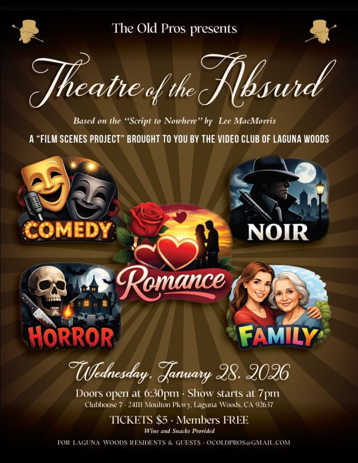 Ever wonder how movies are “really” made? If so, you’ll want to grab a front row seat at the Video Club of Laguna Woods General Meeting on February 18, 2026, in Clubhouse 7. This is your chance to discover what most people living “right next to Hollywood” never get to see.